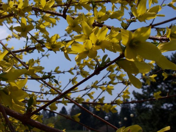 I took some pictures a week or so ago of the forsythias that are blooming.