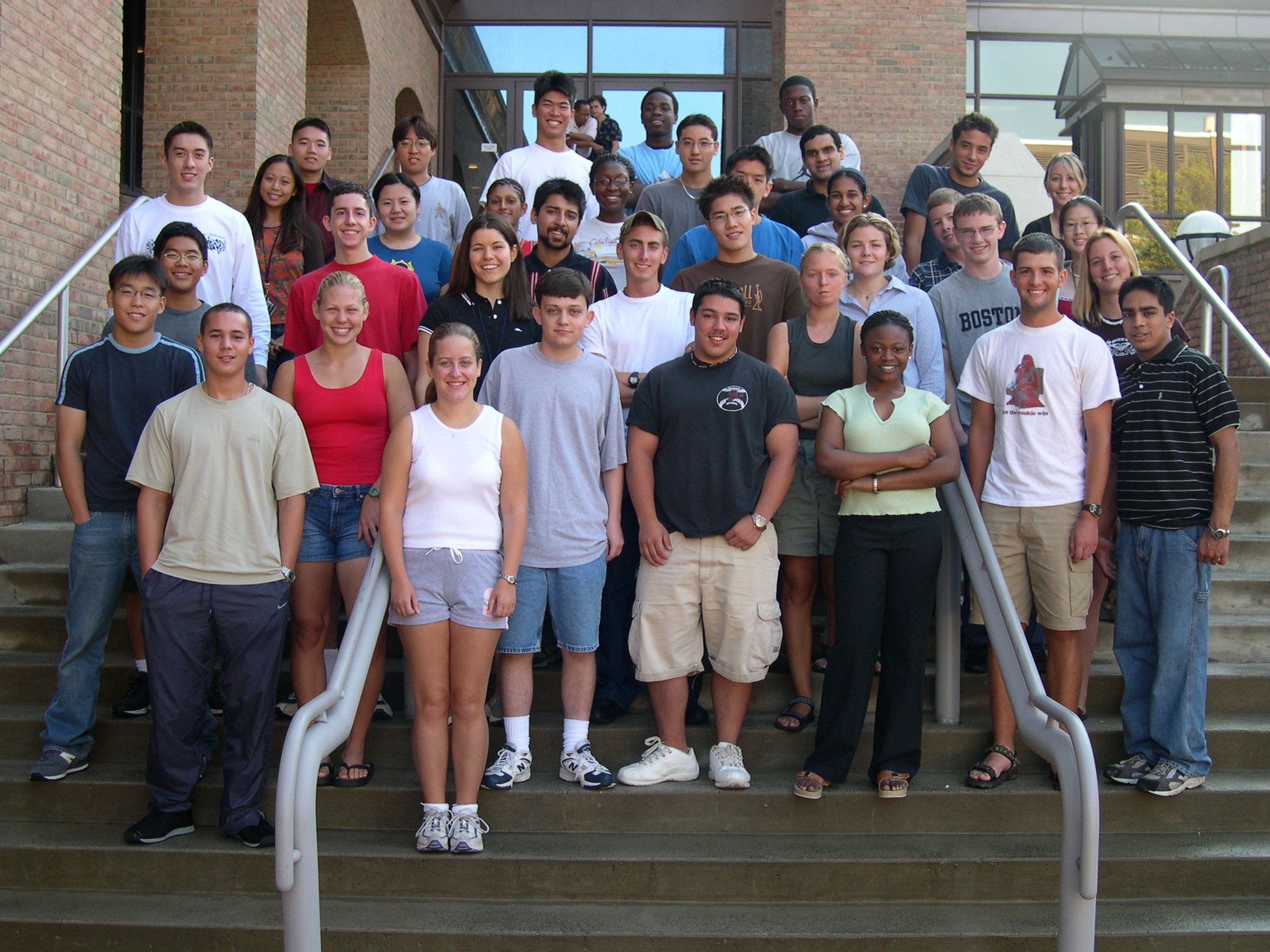 Here is a picture of the students from Fall Orientation. I'm hidden behind the guy in the "Boston" shirt, and Ali, another guy in my suite, is in the blue shirt with red stripes toward the middle.